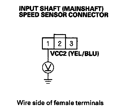 24. Measure the voltage between input shaft (mainshaft) speed sensor connector terminals No. 2 and No. 3.