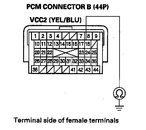 17. Check for continuity between PCM connector terminal B18 and body ground.
