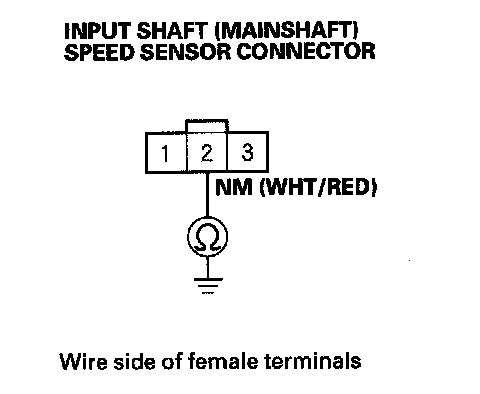 13. Measure the voltage between input shaft (mainshaft) speed sensor connector terminal No. 1 and body ground.