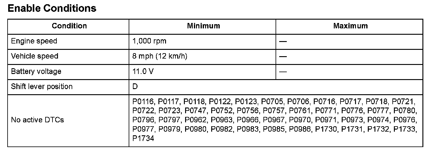 Start the engine, shift to D position, and drive the vehicle at a speed of 8 mph (12 km/h) or more for at least 12 seconds in 3rd gear.
