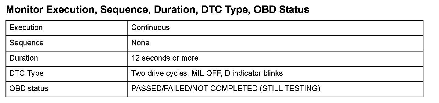 Monitor Execution, Sequence, Duration, DTC Type, OBD Status