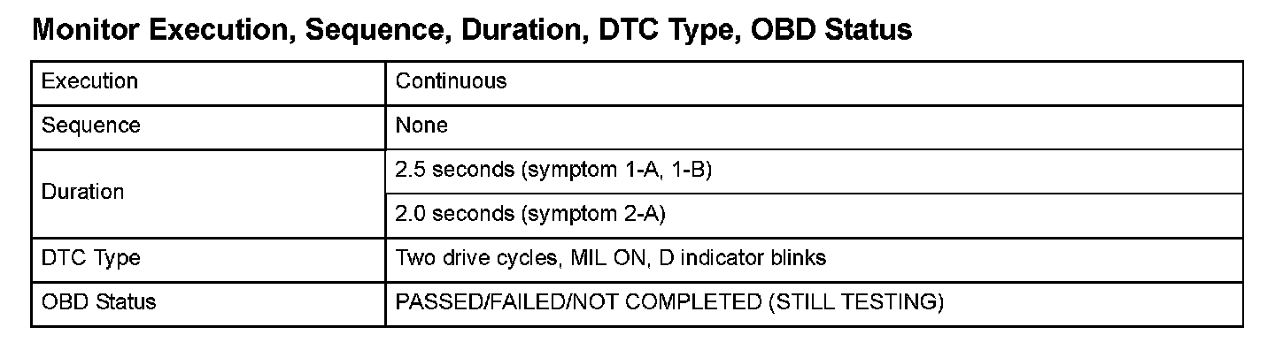 Monitor Execution, Sequence, Duration, DTC Type, OBD Status