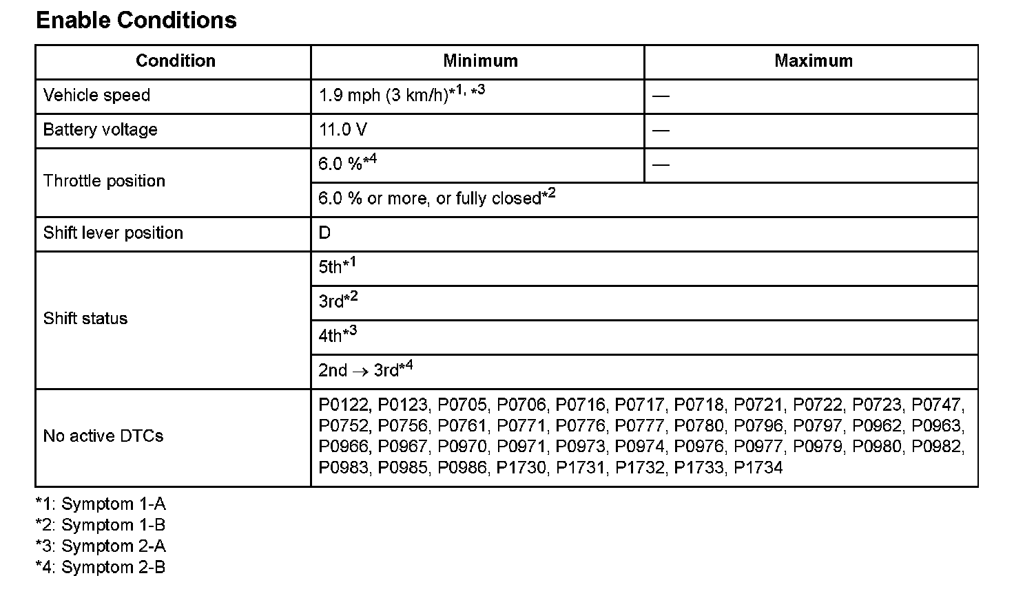 - Symptom 1 occurs during the 1st drive cycle, and symptom 2 occurs during the 2nd drive cycle.