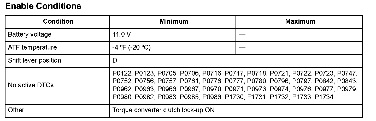 Start the engine, and accelerate the vehicle until the transmission shifts into 5th gear in D position.