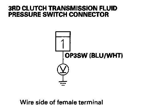10. Measure the voltage between the 3rd clutch transmission fluid pressure switch connector terminal and body ground.