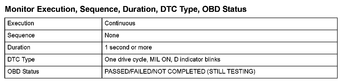 Monitor Execution, Sequence, Duration, DTC Type, OBD Status