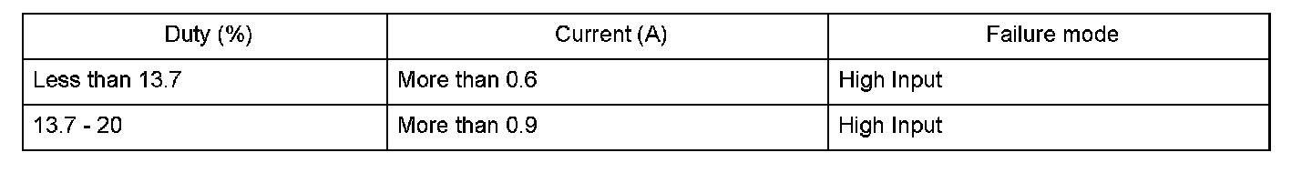 The measured current for the PCM's command value is as specified here for at least 1 second.