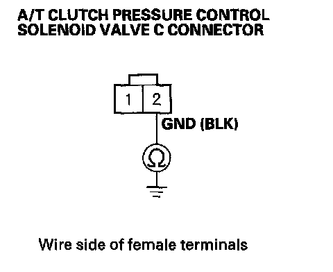 9. Check for continuity between A/T clutch pressure control solenoid valve C connector terminal No. 2 and body ground.