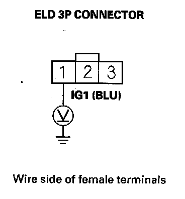 6. Measure voltage between ELD 3P connector terminal No. 1 and body ground.
