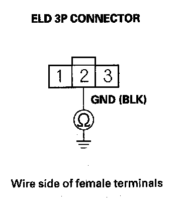 10. Check for continuity between ELD 3P connector terminal No. 2 and body ground.