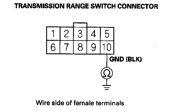 6. Check for continuity between transmission range switch connector terminal No. 10 and body ground.