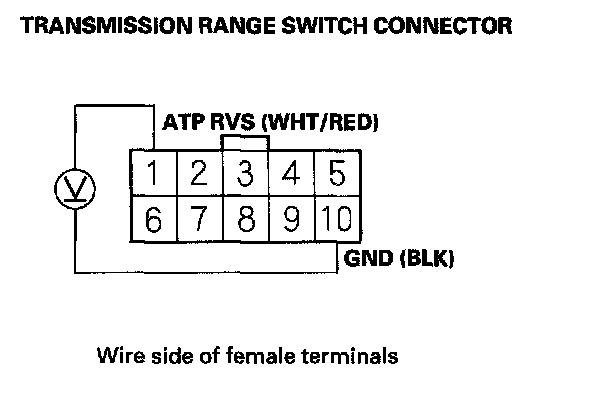 8. Measure the voltage between transmission range switch connector terminals No. 1 and No. 10.
