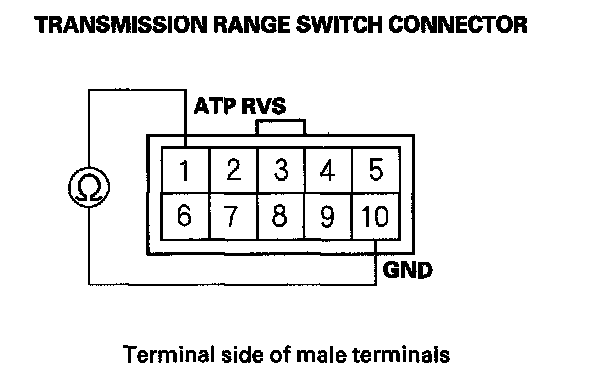 9. Check for continuity between the No. 1 and No. 10 terminals at the transmission range switch.