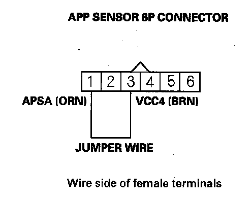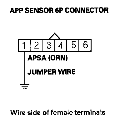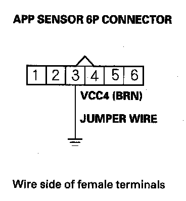 11. Connect APP sensor 6P connector terminal No. 1 to body ground with a jumper wire.