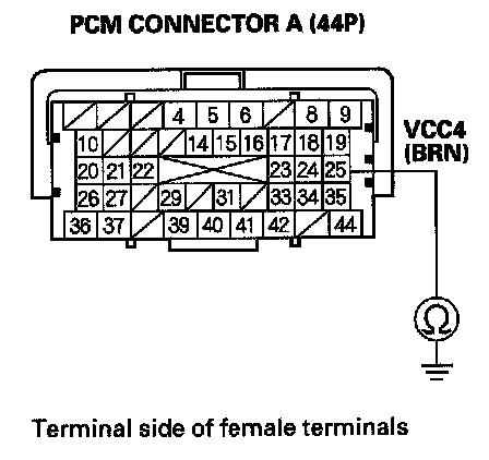21. Check for continuity between PCM connector terminal A25 and body ground.