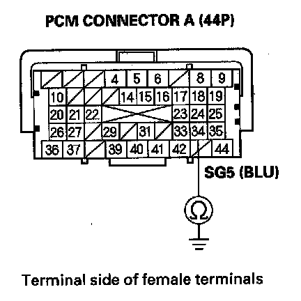 11. Check for continuity between PCM connector terminal A34 and body ground.