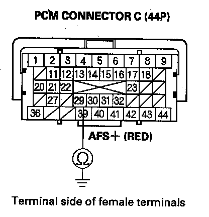 YES - Check for poor connections or loose terminals at the A/F sensor (Sensor 1) and the PCM, then go to step 1. If the connector and terminal fits are OK, go to step 16.