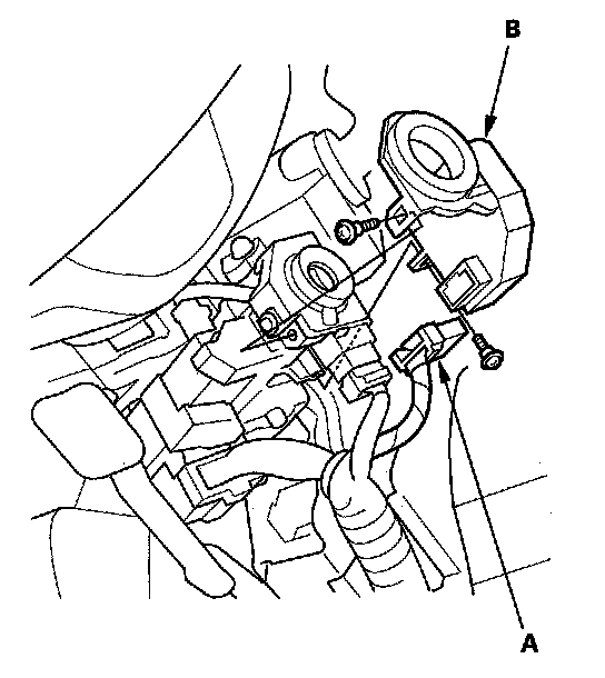 3. Disconnect the 7P connector (A) from the immobilizer-keyless control unit (B).