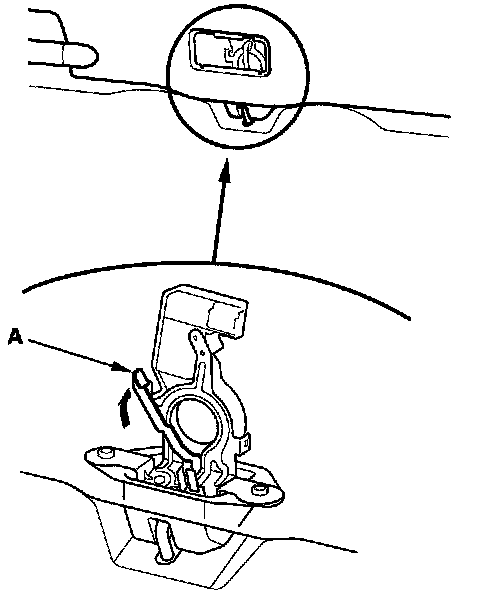 - If the tailgate latch doesn't open by pulling the tailgate handle, remove the maintenance lid from the tailgate lower trim panel, then turn the emergency lever (A) clockwise as shown.