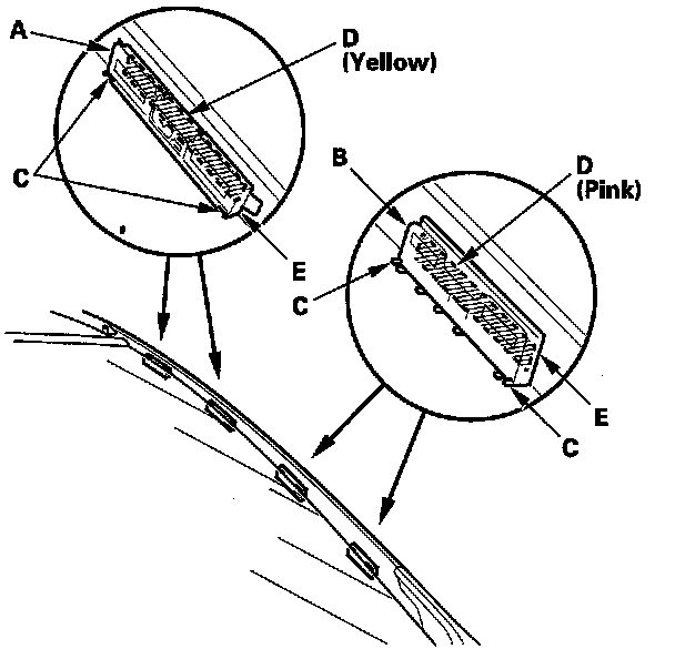 2. Line up the retainers with the alignment marks (C) on the body, and attach the retainers with adhesive tape (D) (3M 9259, or equivalent).