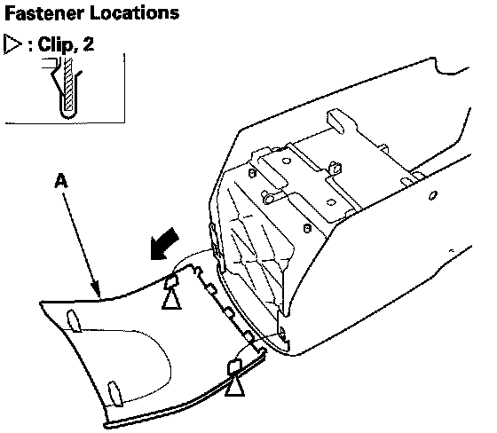6. Gently pull out the center console rear cover (A) to detach the clips.