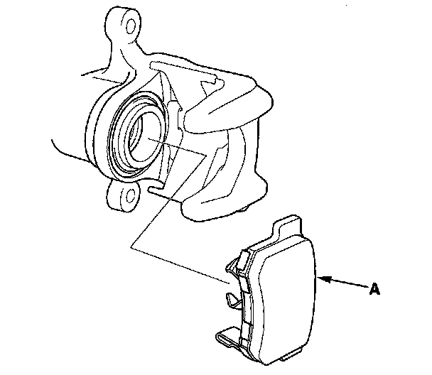 7. Remove the inner pad (A) from the caliper.
