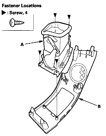 4. If necessary, remove the screws, then remove the passenger's vent (A) from the passenger's vent panel (B).