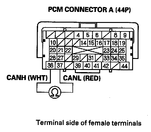 4. Measure resistance between PCM connector terminals A36 and A37.