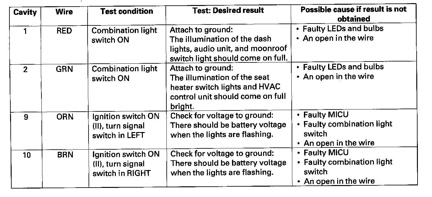 5. Reconnect the connector to the gauge control module, and make the input tests at the connector.