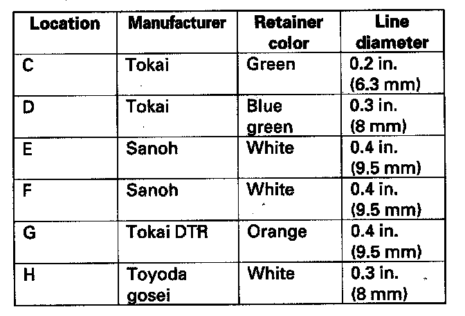 A disconnected quick-connect fitting can be reconnected, but the retainer on the mating line cannot be reused once it has been removed from the line. Replace the retainer when: