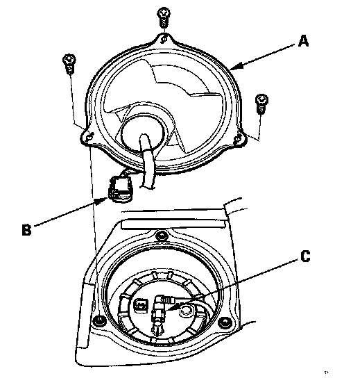 6. Disconnect the quick-connect fitting (C) from the fuel tank unit.