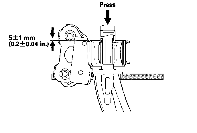 5. Adjust the distance between the top of the lower arm and the bushing surface to the dimension shown.