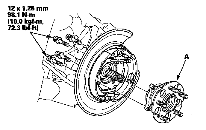 8. Remove the hub bearing unit (A) from the spindle.
