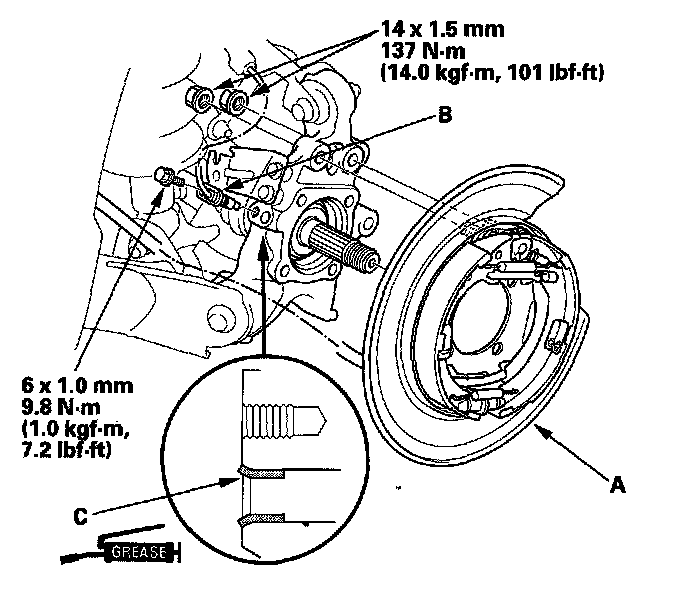 NOTE: During installation, apply multipurpose grease inside of the hole (C) on the knuckle.
