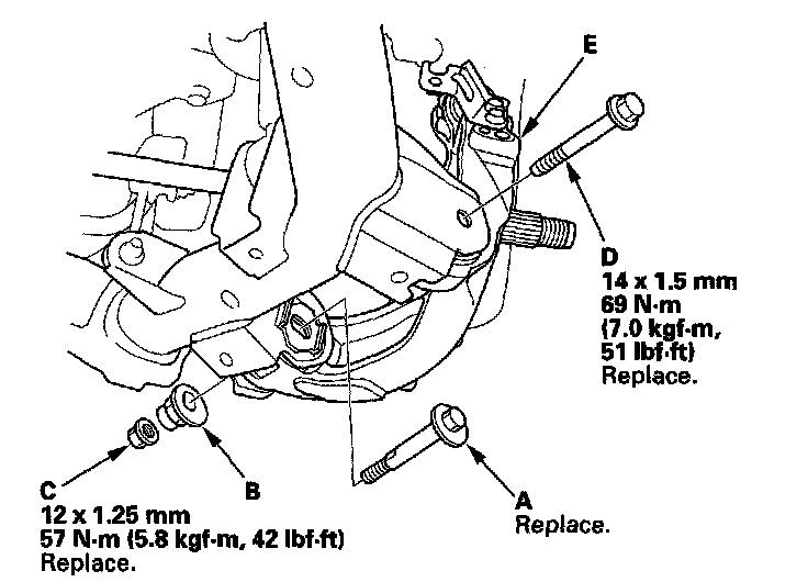 7. Remove the flange bolt (D), and remove the knuckle (E).