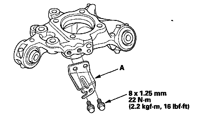 3. Remove the brake hose bracket mounting bolt (A) from the knuckle.