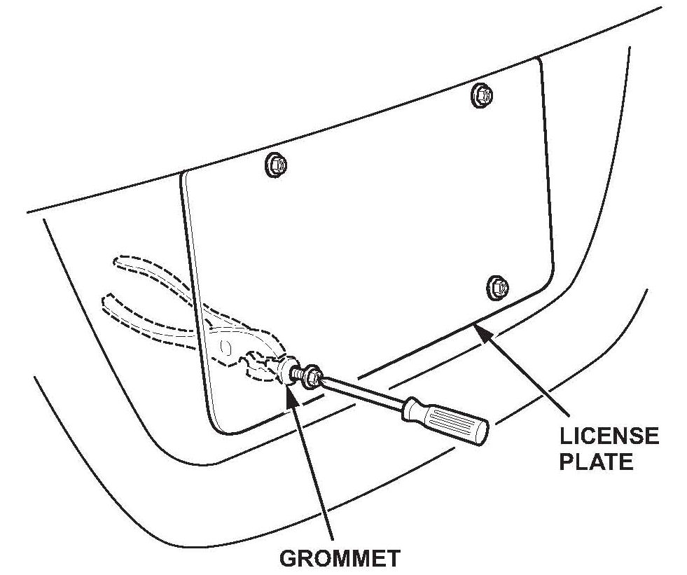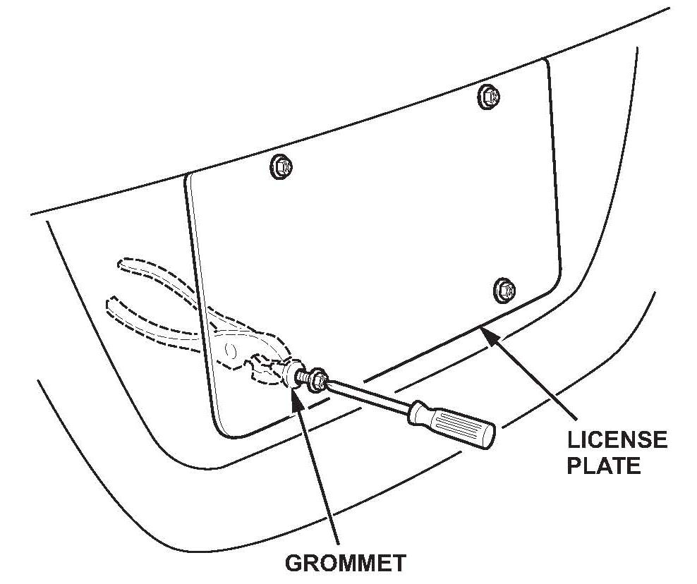 7. Hold the grommets with pliers, then remove screws and the license plate.