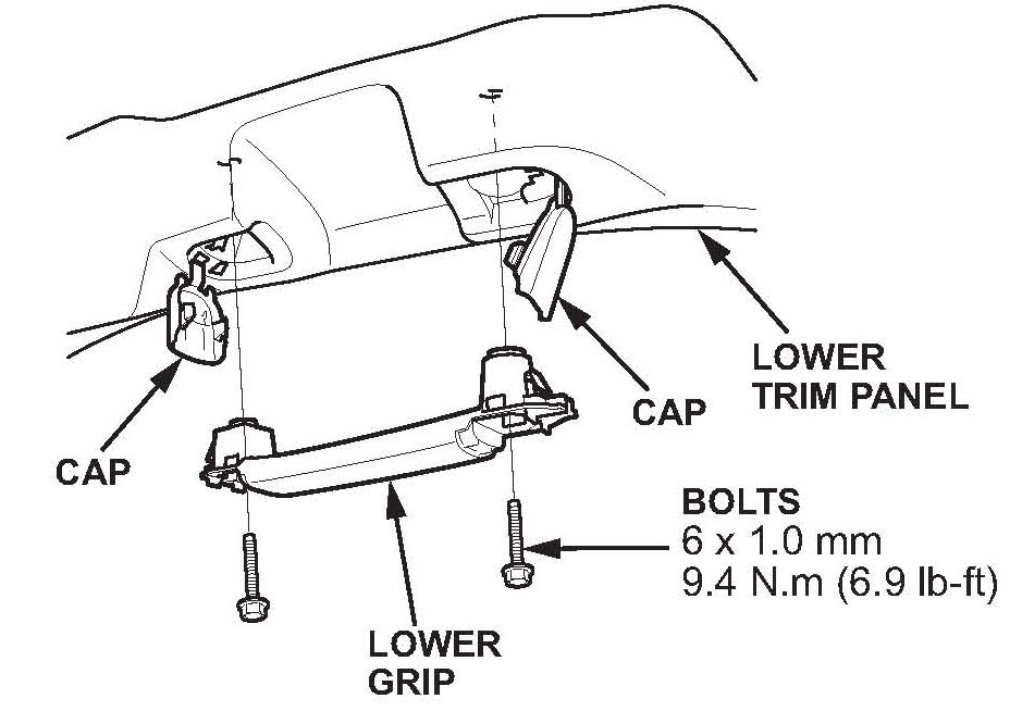 9. Reinstall the lower grip onto the tailgate lower trim panel, and torque the bolt to 9.8 N.m (7.2 lb.ft).