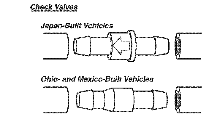 6. Install a new check valve joint with the arrow or the taper pointing towards the nozzle.