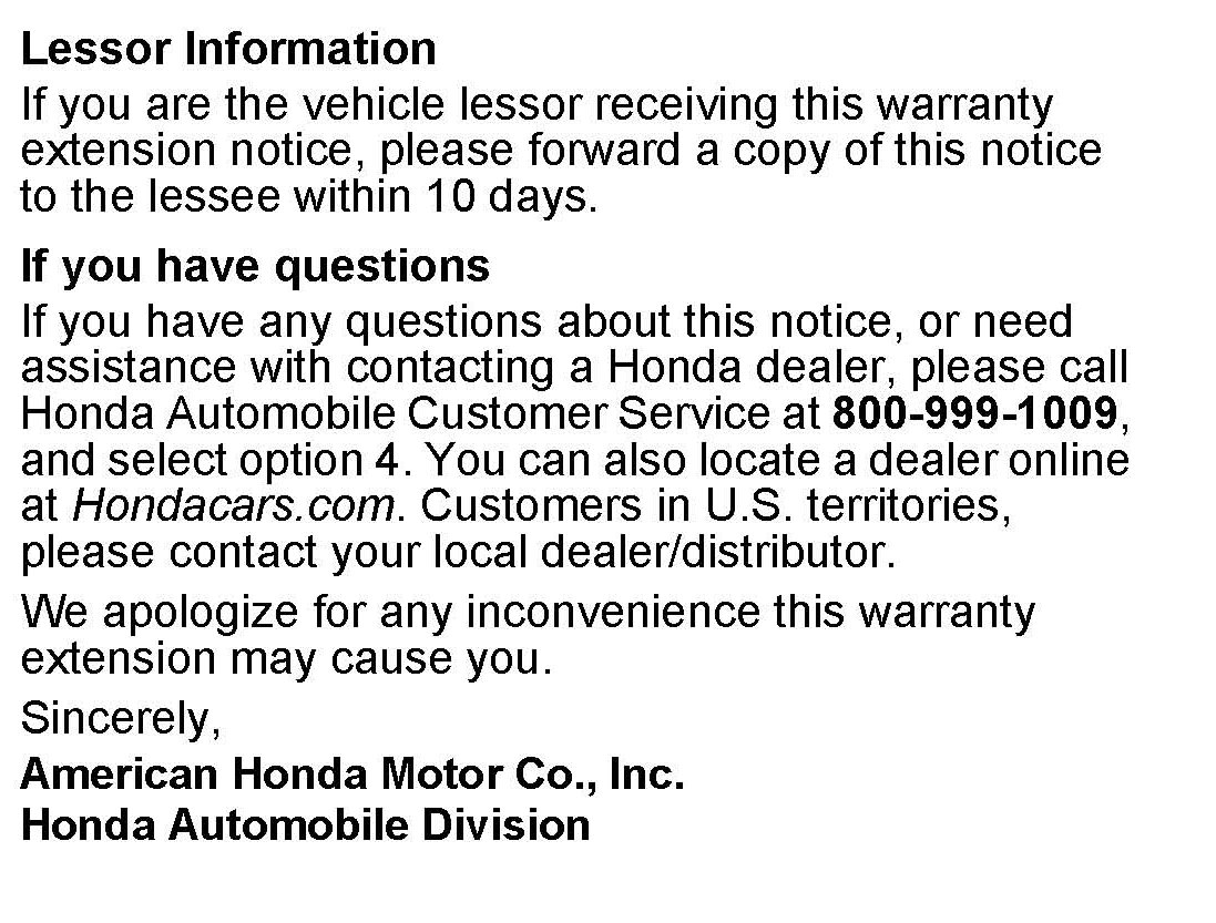 American Honda is extending the warranty on the tailgate paint finish to 7 years from the original date of purchase.
