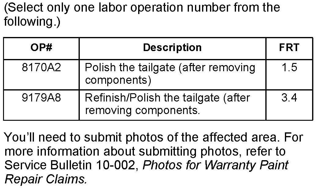 Campaign - Tailgate Paint Finish Warranty Extension