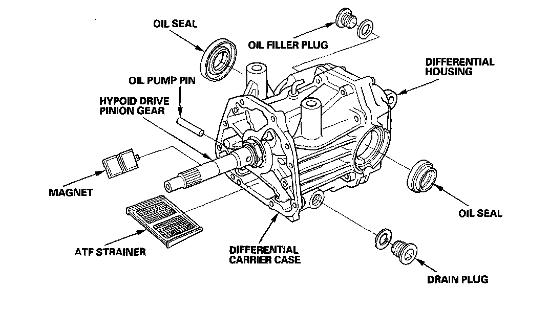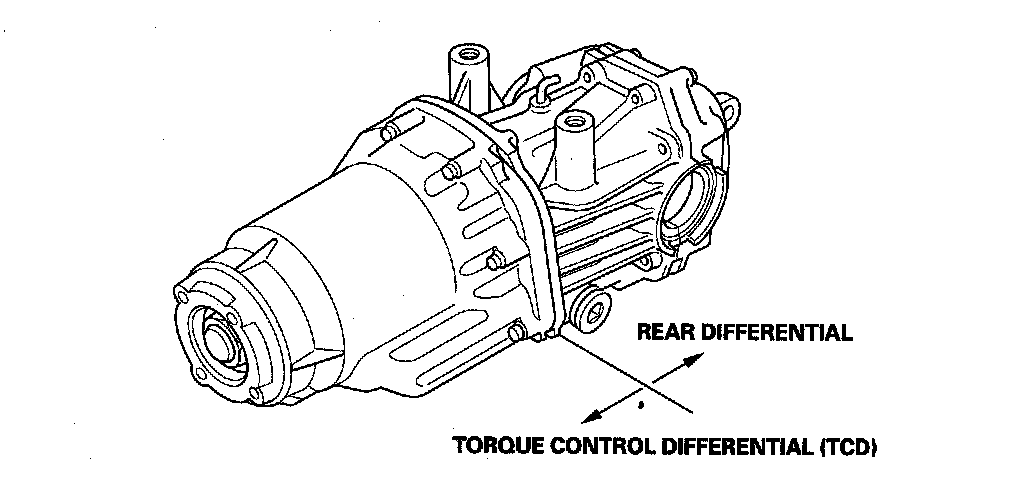The rear differential assembly consists of the torque control differential (TCD) that controls the 4WD mechanism and the rear differential mechanism section.