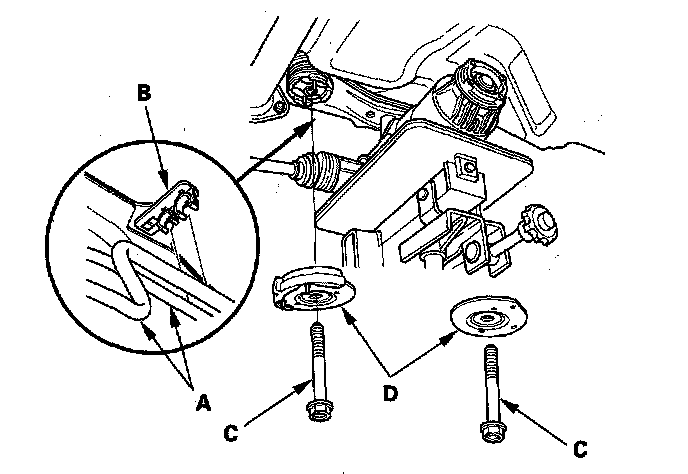 8. Remove the mounting bolts (C) and the plates (D).