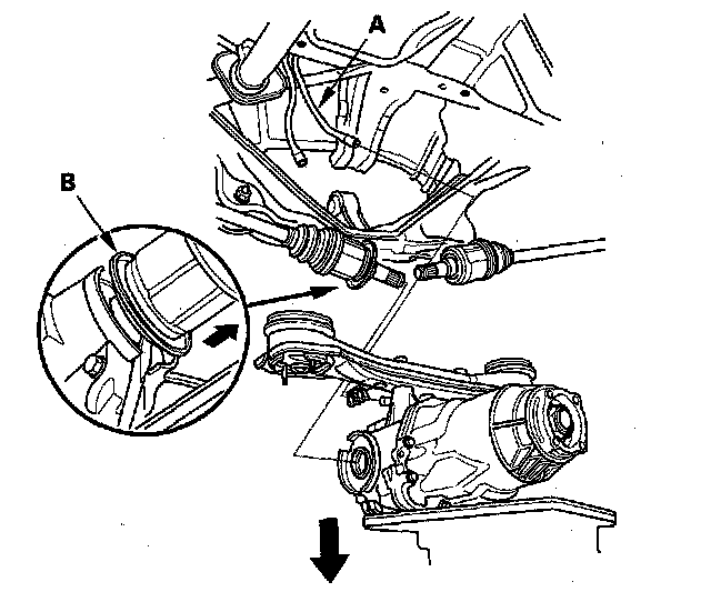 NOTE: Be careful not to damage the driveshaft ring (B) when prying out the driveshaft inboard joints.