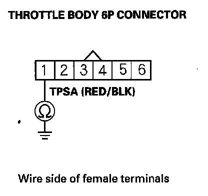 8. Check for continuity between throttle body 6P connector terminal No. 1 and body ground.