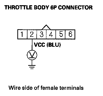 9. Measure voltage between throttle body 6P connector terminal No. 2 and body ground.