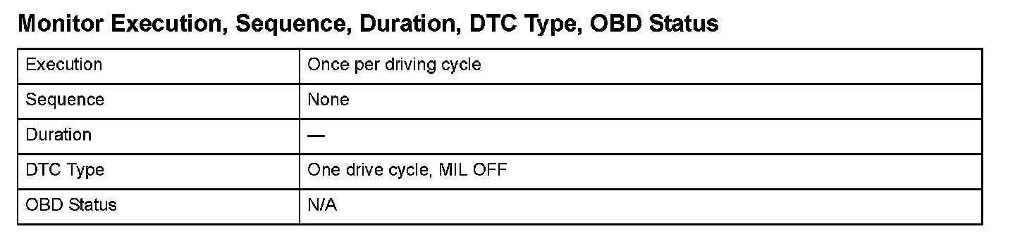 Monitor Execution, Sequence, Duration, DTC Type, OBD Status