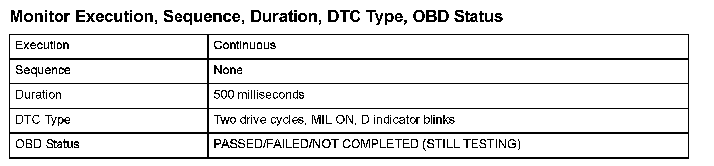 Monitor Execution, Sequence, Duration, DTC Type, OBD Status