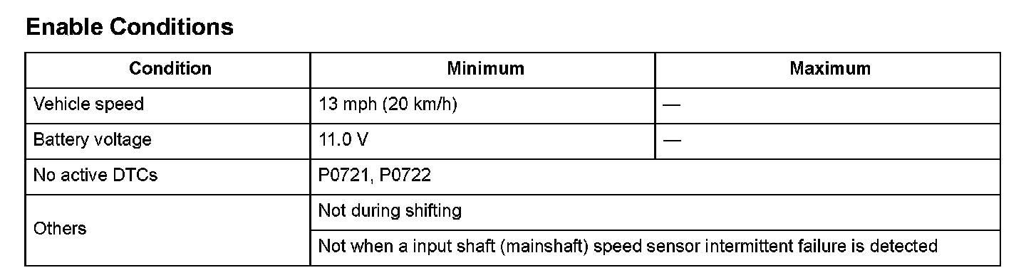The fluctuation of the vehicle speed measured by the output shaft (countershaft) speed sensor in 10 milliseconds is 4 mph (6km/h) or more, and it fluctuates at least six times within 500 milliseconds.