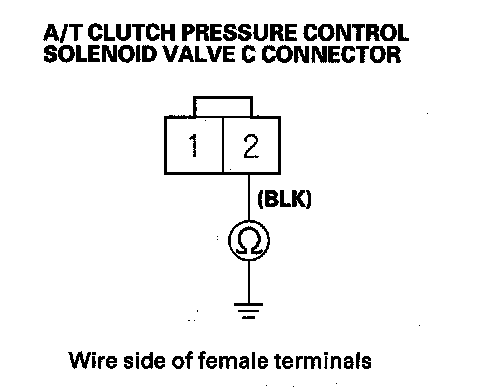 10. Check for continuity between A/T clutch pressure control solenoid valve C connector terminal No. 2 and body ground.